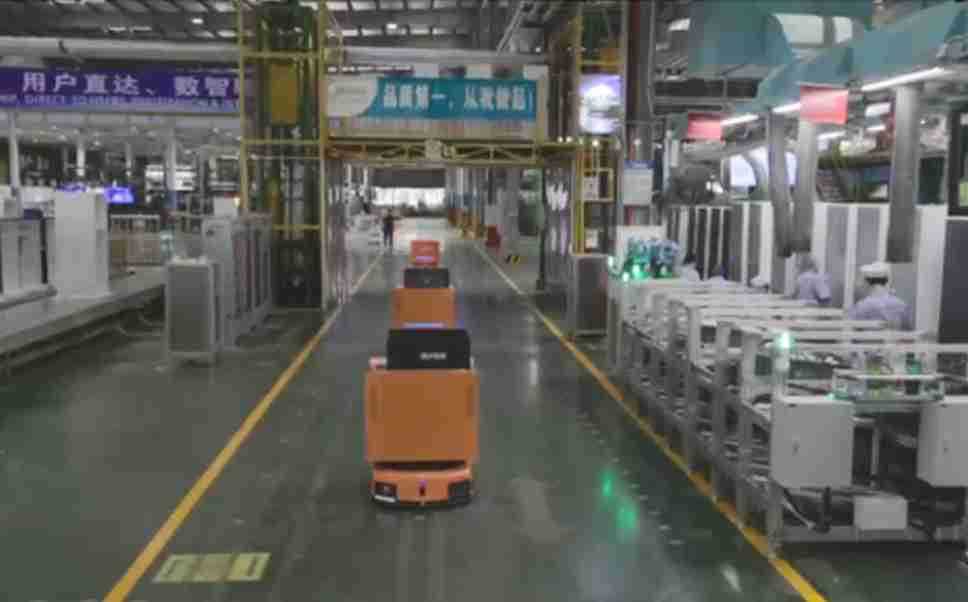 为车载冰箱物流配送打造的智能解决方案,,包含产中物流通过潜伏举升AMR搬运至线边,,产后成品物流智能仓储,,流程包含产中物流智能齐套入库,,,,线边安灯叫料AMR智能配送至线边,,,,成品入库、、出库,,,通过无人堆高车机器人,,,,智能仓储管理替代人工作业管理,,,实现更高存储、、、更高效率、、、、更具柔性化的解决方案。。。